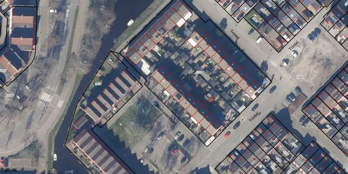 Het perceel waarop Meeuwenhoek 3 staat heeft een oppervlakte van 3757 m². Dit is een zeer groot perceel. De perceeloppervlakte wordt geregistreerd door het Kadaster. Gedetailleerde informatie over de maten van dit perceel kunt u vinden in het rapport Kadastrale kaart met maatvoering van Meeuwenhoek 3.