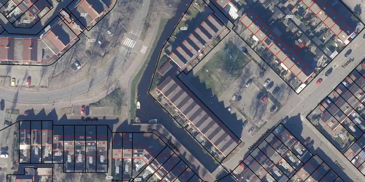 Het perceel waarop Meeuwenhoek 34 staat heeft een oppervlakte van 1890 m². Dit is een zeer groot perceel. De perceeloppervlakte wordt geregistreerd door het Kadaster. Gedetailleerde informatie over de maten van dit perceel kunt u vinden in het rapport Kadastrale kaart met maatvoering van Meeuwenhoek 34.