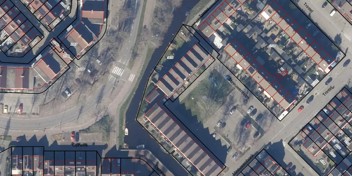 Het perceel waarop Meeuwenhoek 39 staat heeft een oppervlakte van 1890 m². Dit is een zeer groot perceel. De perceeloppervlakte wordt geregistreerd door het Kadaster. Gedetailleerde informatie over de maten van dit perceel kunt u vinden in het rapport Kadastrale kaart met maatvoering van Meeuwenhoek 39.