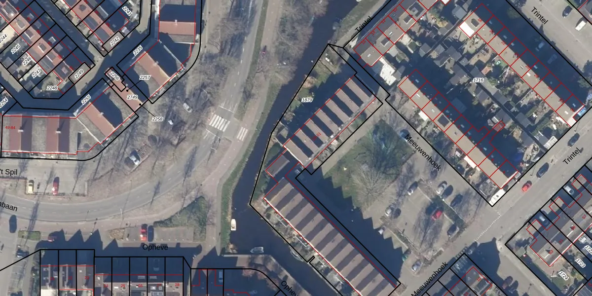 Het perceel waarop Meeuwenhoek 44 staat heeft een oppervlakte van 1890 m². Dit is een zeer groot perceel. De perceeloppervlakte wordt geregistreerd door het Kadaster. Gedetailleerde informatie over de maten van dit perceel kunt u vinden in het rapport Kadastrale kaart met maatvoering van Meeuwenhoek 44.
