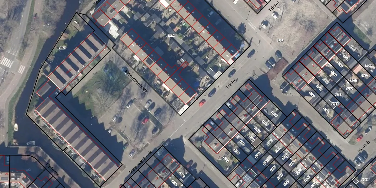 Het perceel waarop Meeuwenhoek 9 staat heeft een oppervlakte van 3757 m². Dit is een zeer groot perceel. De perceeloppervlakte wordt geregistreerd door het Kadaster. Gedetailleerde informatie over de maten van dit perceel kunt u vinden in het rapport Kadastrale kaart met maatvoering van Meeuwenhoek 9.