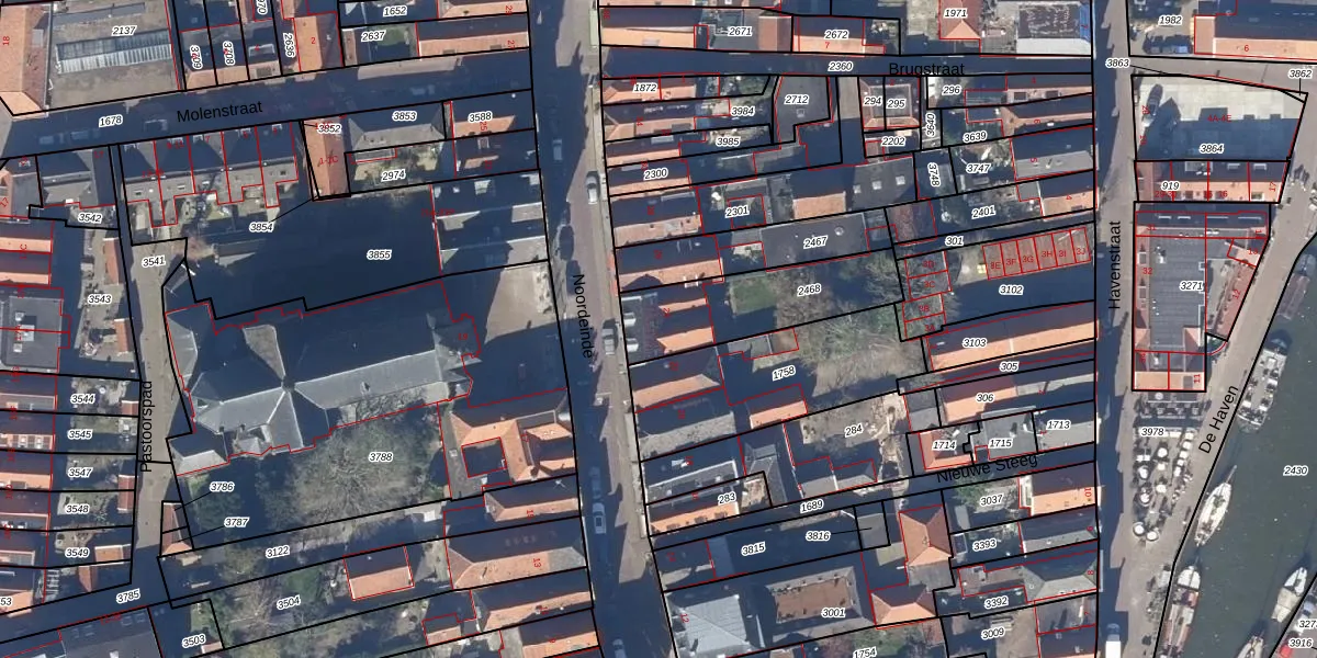 Gebruik de zoekbalk of klik op een perceel voor informatie over de adressen binnen dit perceel.