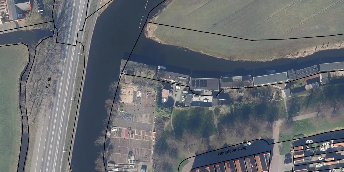 Het perceel waarop Noordervesting 7-WS staat heeft een oppervlakte van 2,1 ha. Dit is een zeer groot perceel. De perceeloppervlakte wordt geregistreerd door het Kadaster. Gedetailleerde informatie over de maten van dit perceel kunt u vinden in het rapport Kadastrale kaart met maatvoering van Noordervesting 7-WS.
