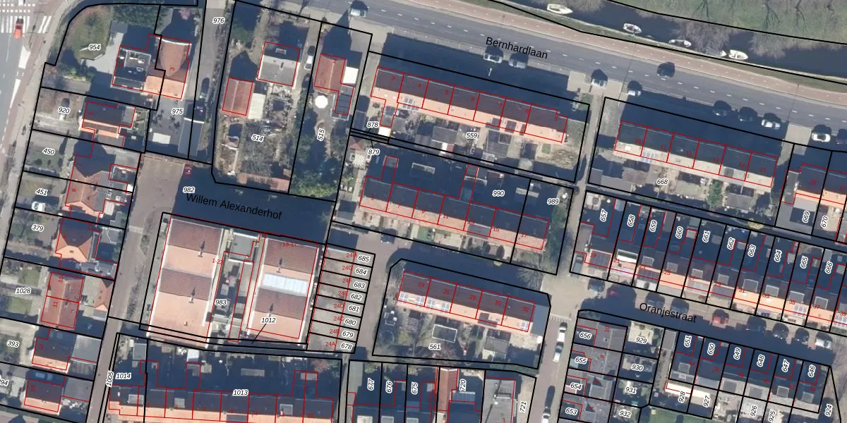 Het perceel waarop Oranjestraat 9 staat heeft een oppervlakte van 906 m². Dit is een groot perceel. De perceeloppervlakte wordt geregistreerd door het Kadaster. Gedetailleerde informatie over de maten van dit perceel kunt u vinden in het rapport Kadastrale kaart met maatvoering van Oranjestraat 9.