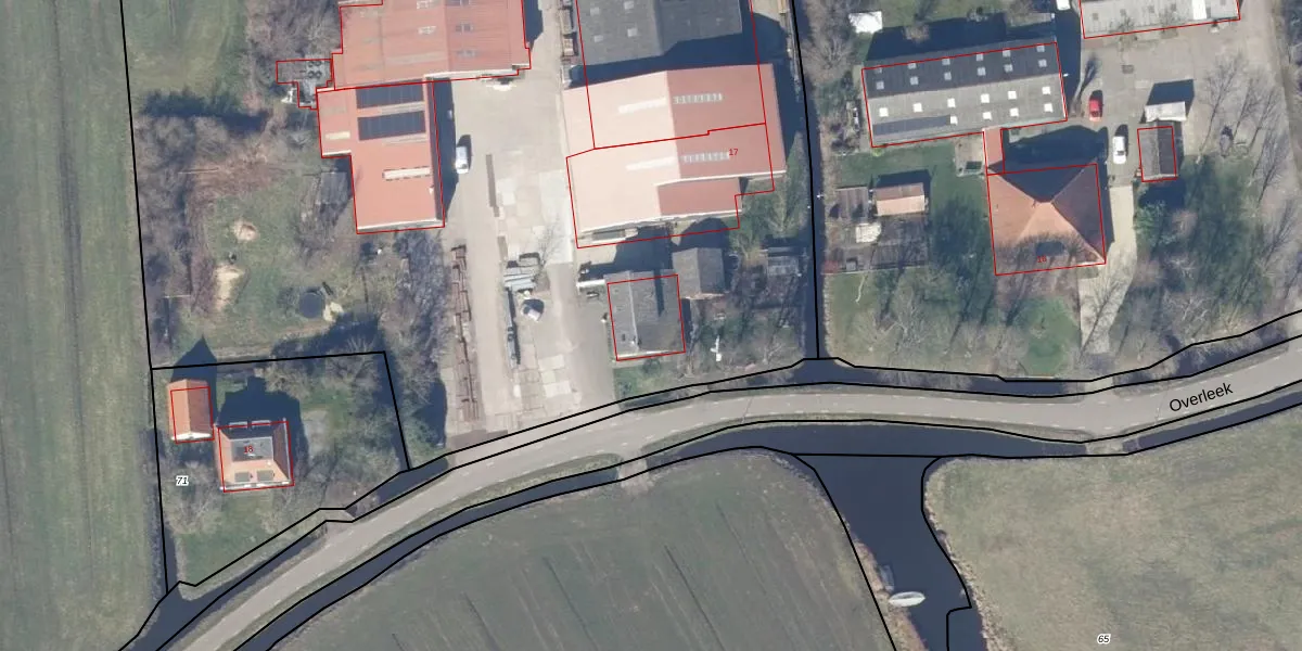 Het perceel waarop Overleek 17 staat heeft een oppervlakte van 2,4 ha. Dit is een zeer groot perceel. De perceeloppervlakte wordt geregistreerd door het Kadaster. Gedetailleerde informatie over de maten van dit perceel kunt u vinden in het rapport Kadastrale kaart met maatvoering van Overleek 17.