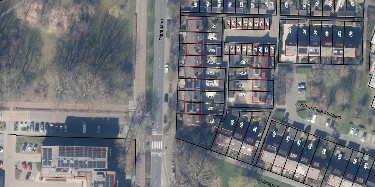 Gebruik de zoekbalk of klik op een perceel voor informatie over de adressen binnen dit perceel.