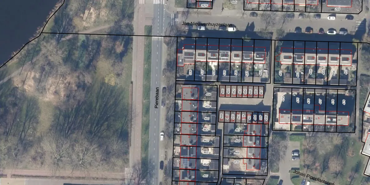 Gebruik de zoekbalk of klik op een perceel voor informatie over de adressen binnen dit perceel.