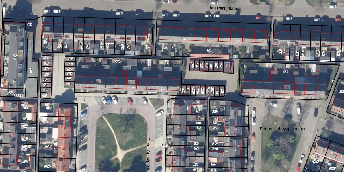 Het perceel waarop Pieter Appelplein 74 staat heeft een oppervlakte van 1295 m². Dit is een zeer groot perceel. De perceeloppervlakte wordt geregistreerd door het Kadaster. Gedetailleerde informatie over de maten van dit perceel kunt u vinden in het rapport Kadastrale kaart met maatvoering van Pieter Appelplein 74.