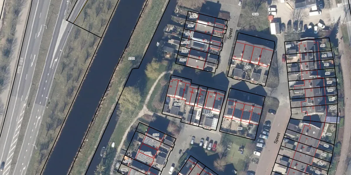 Het perceel waarop Speet 30 staat heeft een oppervlakte van 390 m². Dit is een groot perceel. De perceeloppervlakte wordt geregistreerd door het Kadaster. Gedetailleerde informatie over de maten van dit perceel kunt u vinden in het rapport Kadastrale kaart met maatvoering van Speet 30.
