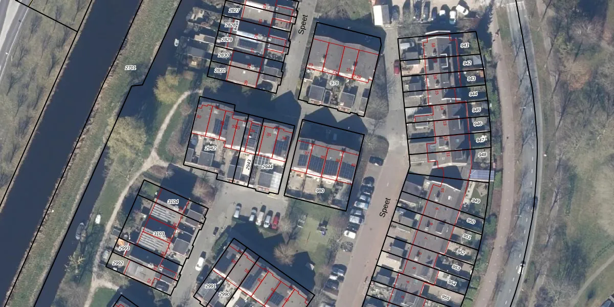 Het perceel waarop Speet 37 staat heeft een oppervlakte van 532 m². Dit is een groot perceel. De perceeloppervlakte wordt geregistreerd door het Kadaster. Gedetailleerde informatie over de maten van dit perceel kunt u vinden in het rapport Kadastrale kaart met maatvoering van Speet 37.