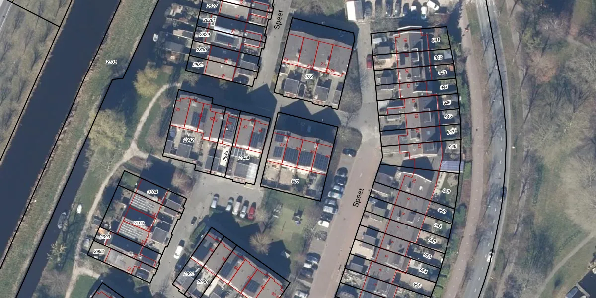 Het perceel waarop Speet 38 staat heeft een oppervlakte van 532 m². Dit is een groot perceel. De perceeloppervlakte wordt geregistreerd door het Kadaster. Gedetailleerde informatie over de maten van dit perceel kunt u vinden in het rapport Kadastrale kaart met maatvoering van Speet 38.
