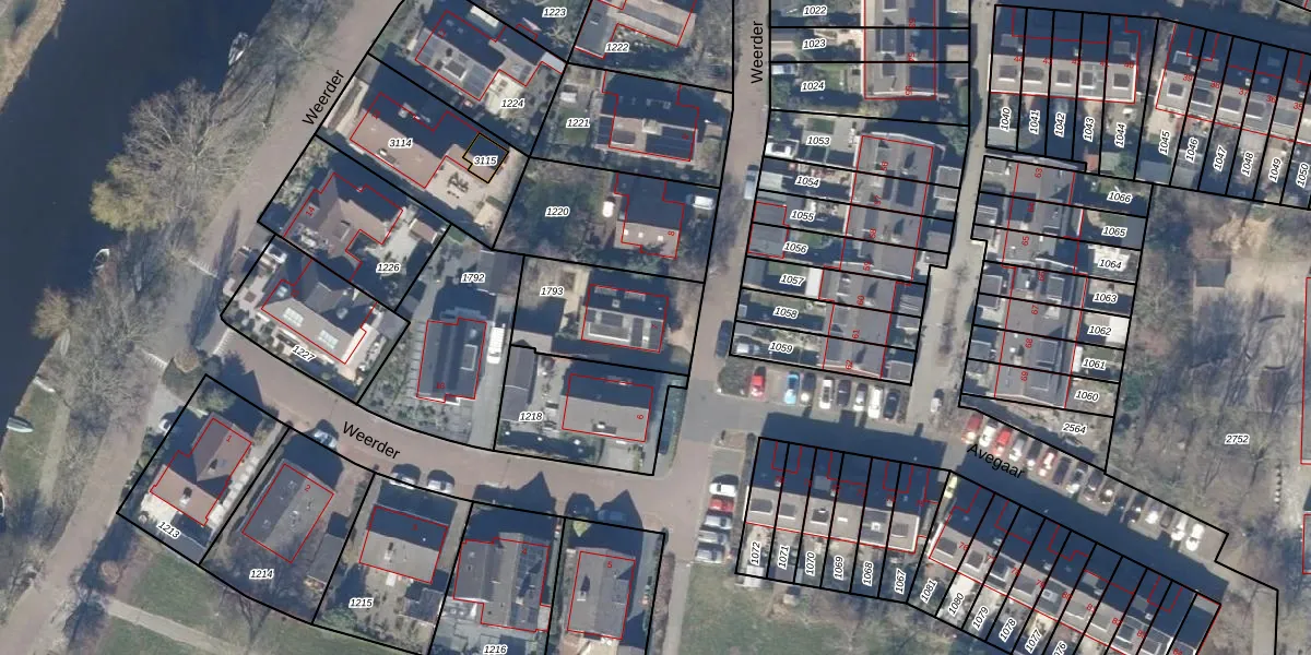Het perceel waarop Weerder 7 staat heeft een oppervlakte van 390 m². Dit is een groot perceel. De perceeloppervlakte wordt geregistreerd door het Kadaster. Gedetailleerde informatie over de maten van dit perceel kunt u vinden in het rapport Kadastrale kaart met maatvoering van Weerder 7.