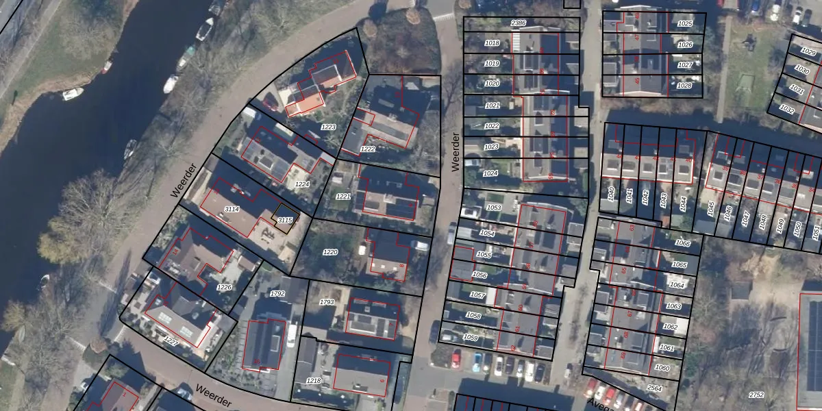 Het perceel waarop Weerder 9 staat heeft een oppervlakte van 416 m². Dit is een groot perceel. De perceeloppervlakte wordt geregistreerd door het Kadaster. Gedetailleerde informatie over de maten van dit perceel kunt u vinden in het rapport Kadastrale kaart met maatvoering van Weerder 9.