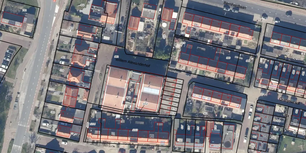 Het perceel waarop Willem Alexanderhof 13 staat heeft een oppervlakte van 1042 m². Dit is een zeer groot perceel. De perceeloppervlakte wordt geregistreerd door het Kadaster. Gedetailleerde informatie over de maten van dit perceel kunt u vinden in het rapport Kadastrale kaart met maatvoering van Willem Alexanderhof 13.