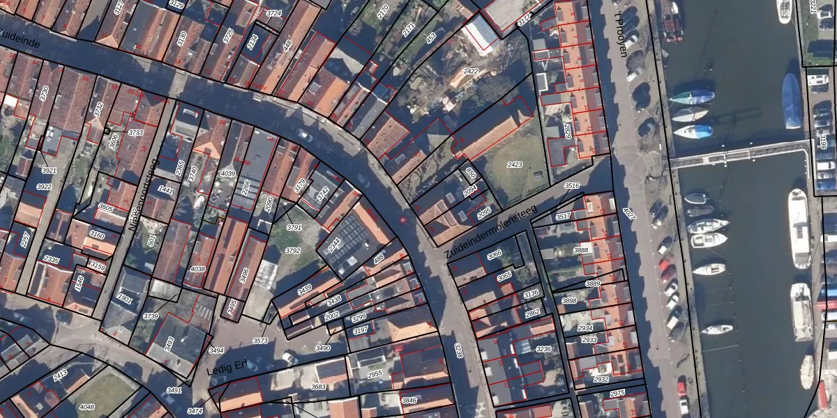 Gebruik de zoekbalk of klik op een perceel voor informatie over de adressen binnen dit perceel.