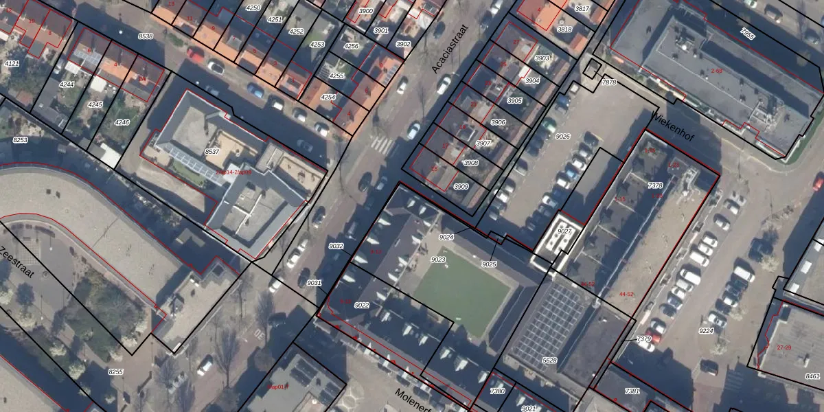 Acaciastraat 13 is gelegen op kadastraal perceel MSR00G9023. Deze kadastrale aanduiding is uniek en wordt gebruikt door het Kadaster om eigendomsrechten en andere zakelijke rechten vast te leggen. Het perceel maakt onderdeel uit van de kadastrale gemeente Monster.