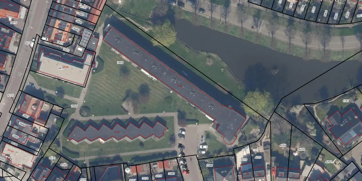 Het perceel waarop Amandelgaarde 33 staat heeft een oppervlakte van 6389 m². Dit is een zeer groot perceel. De perceeloppervlakte wordt geregistreerd door het Kadaster. Gedetailleerde informatie over de maten van dit perceel kunt u vinden in het rapport Kadastrale kaart met maatvoering van Amandelgaarde 33.