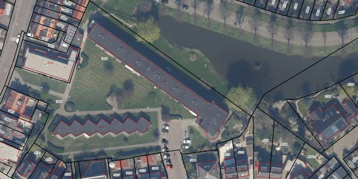 Het perceel waarop Amandelgaarde 7 staat heeft een oppervlakte van 6389 m². Dit is een zeer groot perceel. De perceeloppervlakte wordt geregistreerd door het Kadaster. Gedetailleerde informatie over de maten van dit perceel kunt u vinden in het rapport Kadastrale kaart met maatvoering van Amandelgaarde 7.