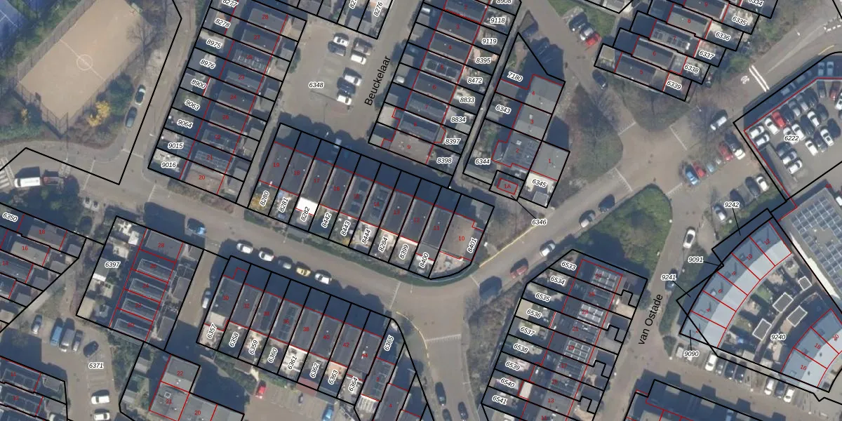 Gebruik de zoekbalk of klik op een perceel voor informatie over de adressen binnen dit perceel.