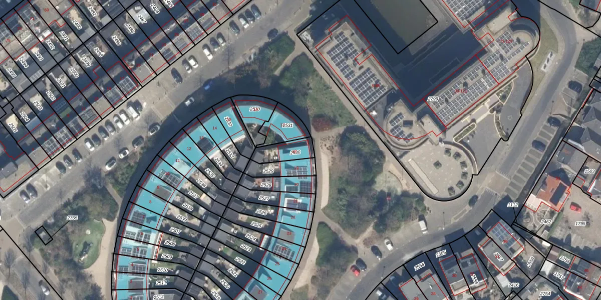 Gebruik de zoekbalk of klik op een perceel voor informatie over de adressen binnen dit perceel.