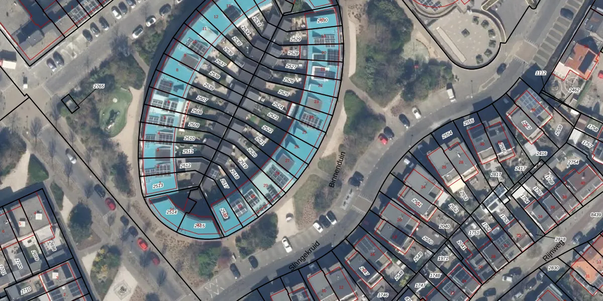Het perceel waarop Binnenduin 26 staat heeft een oppervlakte van 143 m². Dit is een middelgroot perceel. De perceeloppervlakte wordt geregistreerd door het Kadaster. Gedetailleerde informatie over de maten van dit perceel kunt u vinden in het rapport Kadastrale kaart met maatvoering van Binnenduin 26.