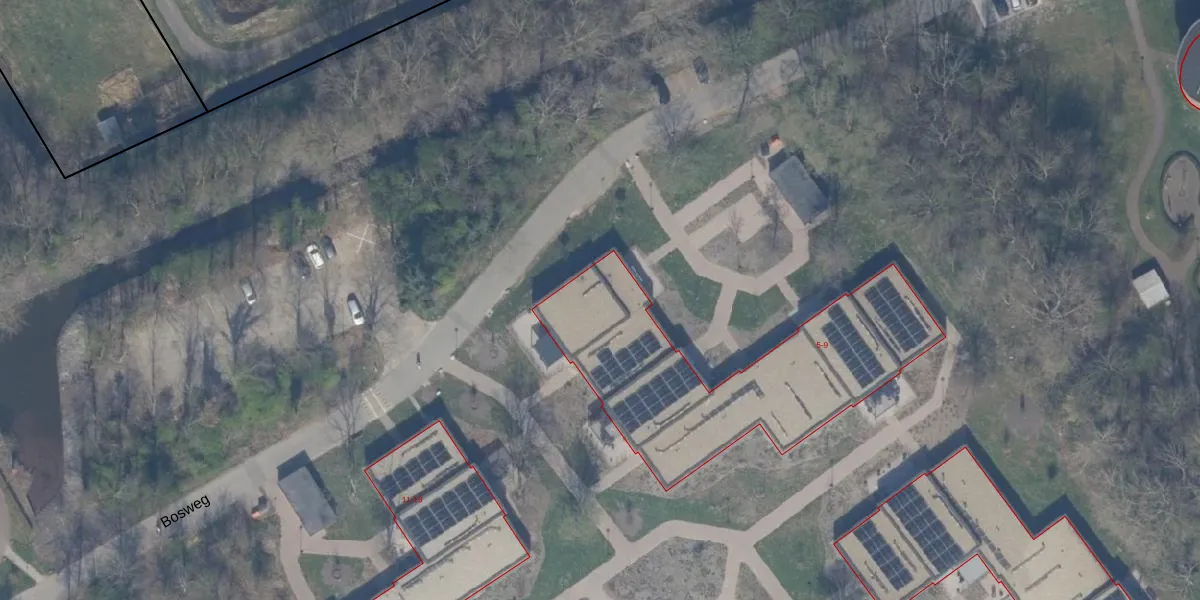 Het perceel waarop Bosweg 9 staat heeft een oppervlakte van 38,3 ha. Dit is een zeer groot perceel. De perceeloppervlakte wordt geregistreerd door het Kadaster. Gedetailleerde informatie over de maten van dit perceel kunt u vinden in het rapport Kadastrale kaart met maatvoering van Bosweg 9.