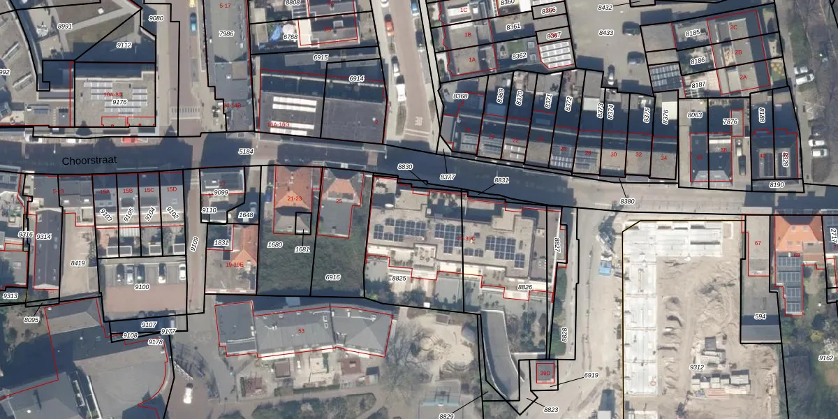 Het perceel waarop Choorstraat 27-A staat heeft een oppervlakte van 680 m². Dit is een groot perceel. De perceeloppervlakte wordt geregistreerd door het Kadaster. Gedetailleerde informatie over de maten van dit perceel kunt u vinden in het rapport Kadastrale kaart met maatvoering van Choorstraat 27-A.