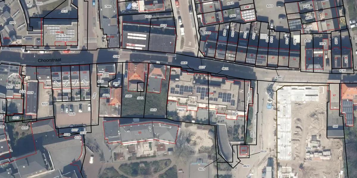 Het perceel waarop Choorstraat 29 staat heeft een oppervlakte van 680 m². Dit is een groot perceel. De perceeloppervlakte wordt geregistreerd door het Kadaster. Gedetailleerde informatie over de maten van dit perceel kunt u vinden in het rapport Kadastrale kaart met maatvoering van Choorstraat 29.