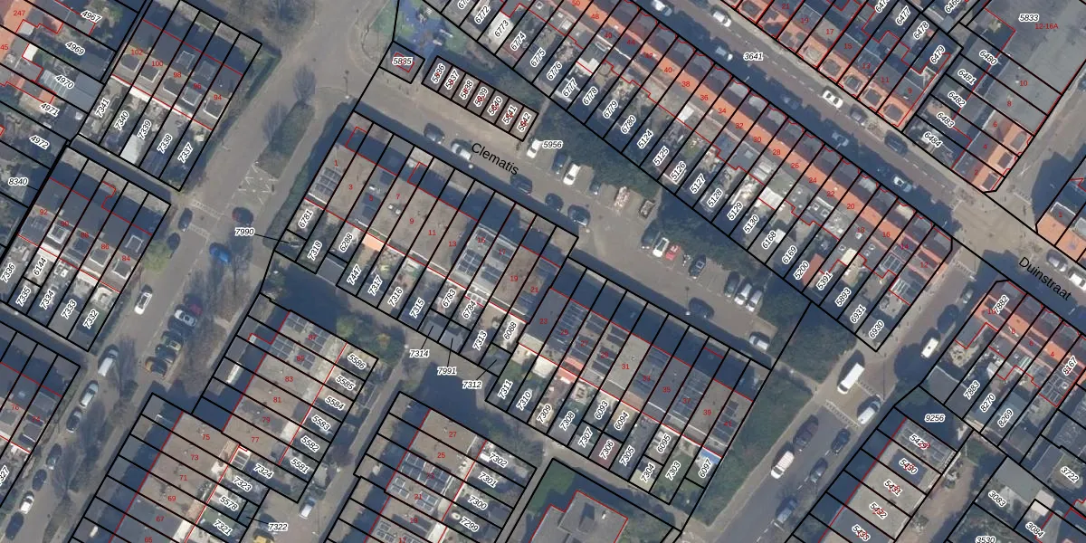 Het perceel waarop Clematis 21 staat heeft een oppervlakte van 109 m². Dit is een middelgroot perceel. De perceeloppervlakte wordt geregistreerd door het Kadaster. Gedetailleerde informatie over de maten van dit perceel kunt u vinden in het rapport Kadastrale kaart met maatvoering van Clematis 21.