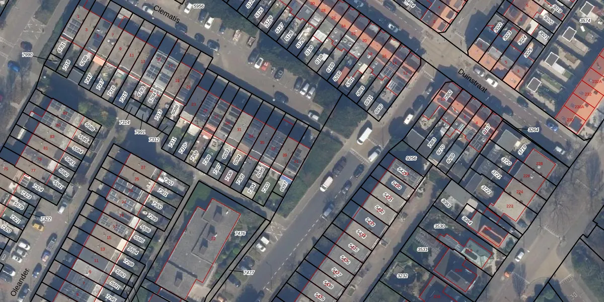 Gebruik de zoekbalk of klik op een perceel voor informatie over de adressen binnen dit perceel.