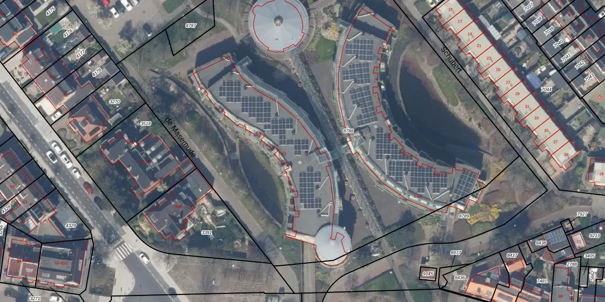 Het perceel waarop de Masemude 25 staat heeft een oppervlakte van 8305 m². Dit is een zeer groot perceel. De perceeloppervlakte wordt geregistreerd door het Kadaster. Gedetailleerde informatie over de maten van dit perceel kunt u vinden in het rapport Kadastrale kaart met maatvoering van de Masemude 25.