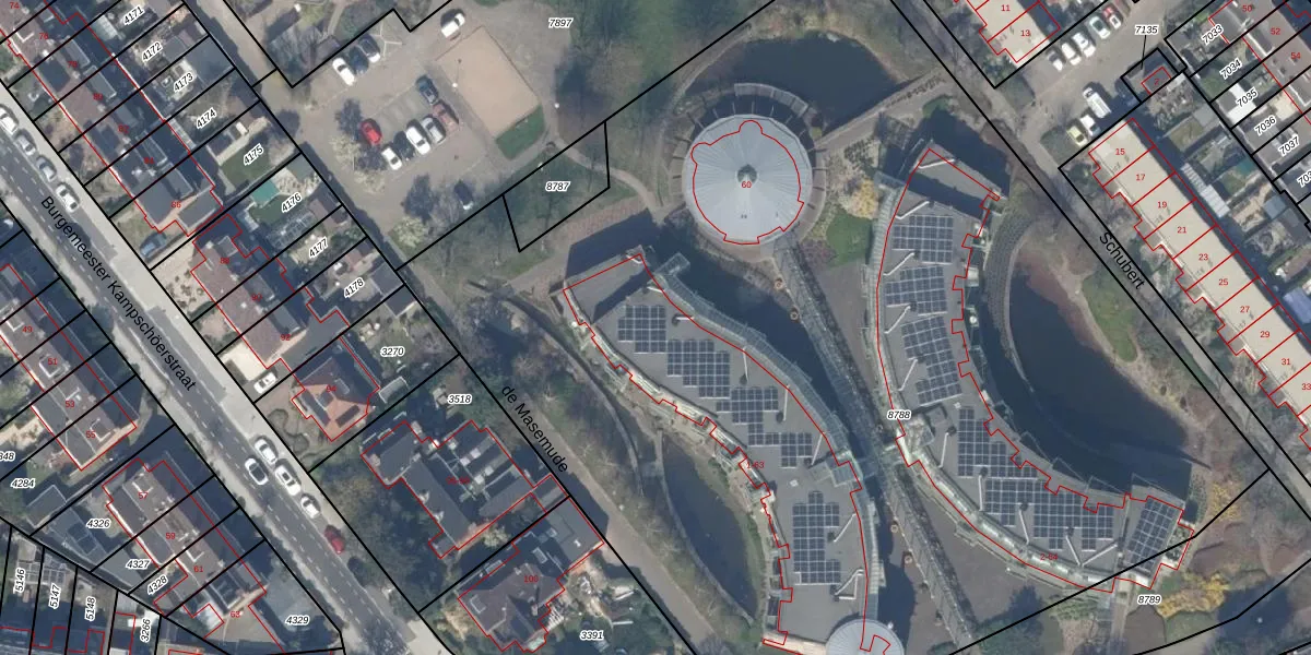 Het perceel waarop de Masemude 33 staat heeft een oppervlakte van 8305 m². Dit is een zeer groot perceel. De perceeloppervlakte wordt geregistreerd door het Kadaster. Gedetailleerde informatie over de maten van dit perceel kunt u vinden in het rapport Kadastrale kaart met maatvoering van de Masemude 33.