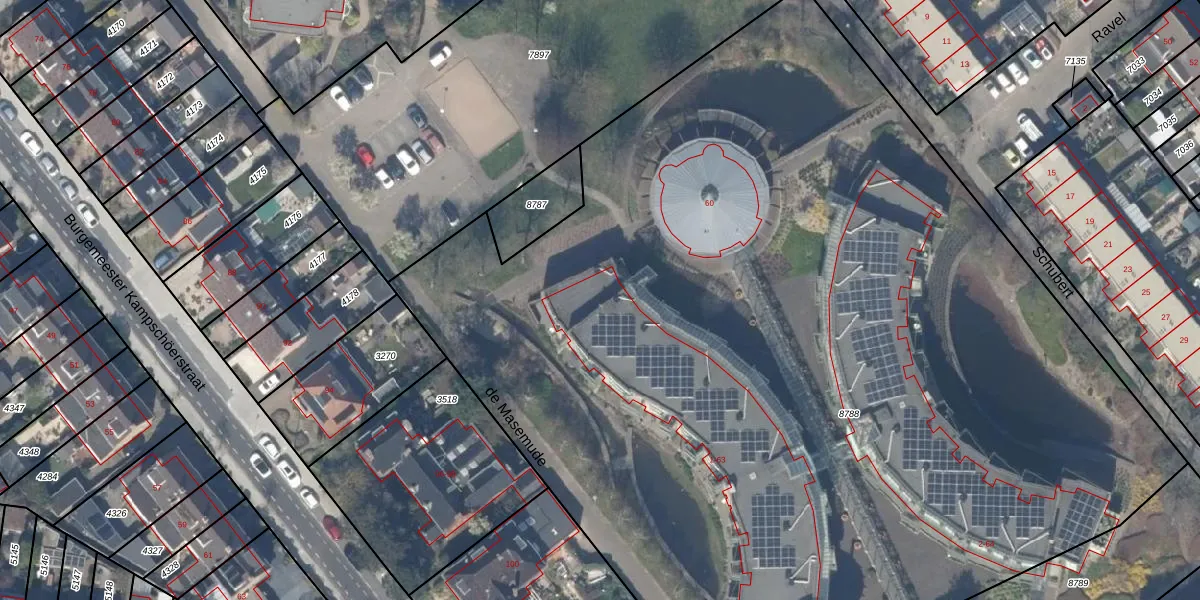 Het perceel waarop de Masemude 35 staat heeft een oppervlakte van 8305 m². Dit is een zeer groot perceel. De perceeloppervlakte wordt geregistreerd door het Kadaster. Gedetailleerde informatie over de maten van dit perceel kunt u vinden in het rapport Kadastrale kaart met maatvoering van de Masemude 35.