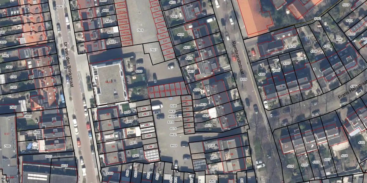 Het perceel waarop Dr van den Brinkstraat 11-D staat heeft een oppervlakte van 1304 m². Dit is een zeer groot perceel. De perceeloppervlakte wordt geregistreerd door het Kadaster. Gedetailleerde informatie over de maten van dit perceel kunt u vinden in het rapport Kadastrale kaart met maatvoering van Dr van den Brinkstraat 11-D.
