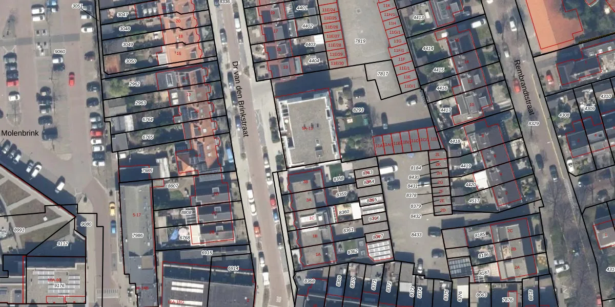 Het perceel waarop Dr van den Brinkstraat 7-A staat heeft een oppervlakte van 1304 m². Dit is een zeer groot perceel. De perceeloppervlakte wordt geregistreerd door het Kadaster. Gedetailleerde informatie over de maten van dit perceel kunt u vinden in het rapport Kadastrale kaart met maatvoering van Dr van den Brinkstraat 7-A.
