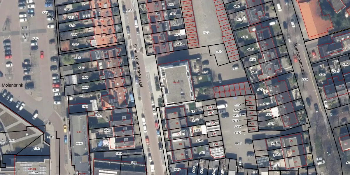 Het perceel waarop Dr van den Brinkstraat 7-B staat heeft een oppervlakte van 1304 m². Dit is een zeer groot perceel. De perceeloppervlakte wordt geregistreerd door het Kadaster. Gedetailleerde informatie over de maten van dit perceel kunt u vinden in het rapport Kadastrale kaart met maatvoering van Dr van den Brinkstraat 7-B.