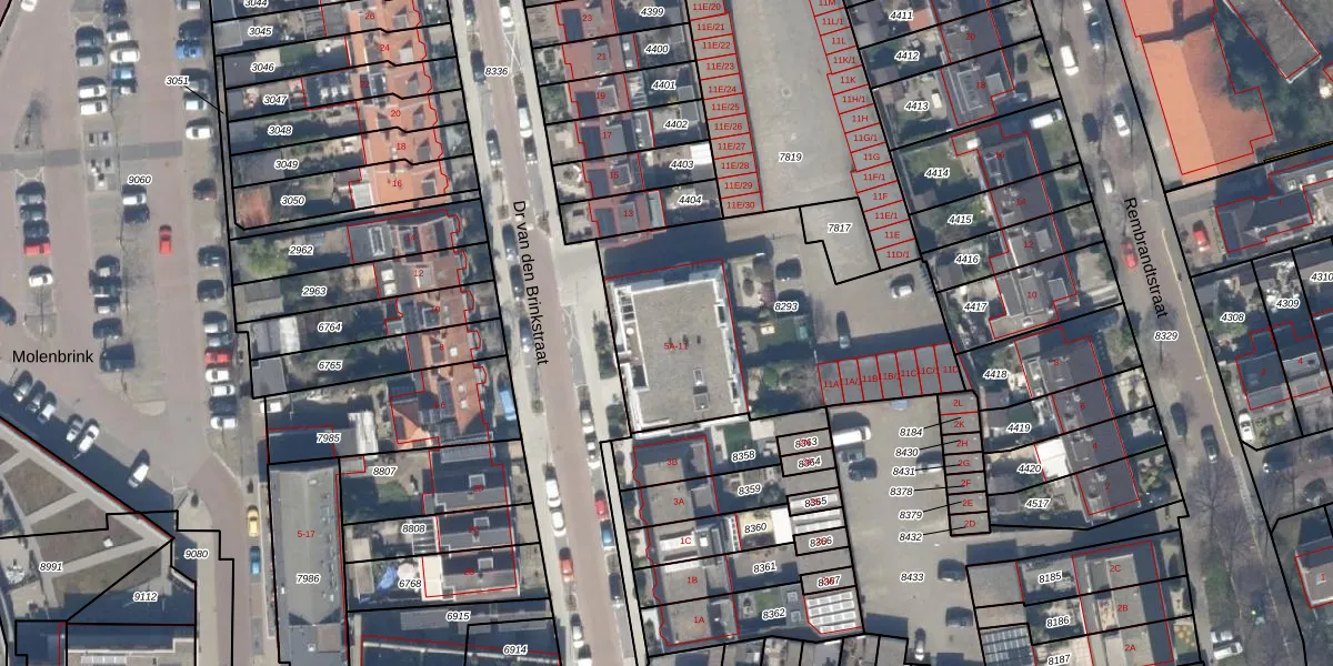 Het perceel waarop Dr van den Brinkstraat 7-C staat heeft een oppervlakte van 1304 m². Dit is een zeer groot perceel. De perceeloppervlakte wordt geregistreerd door het Kadaster. Gedetailleerde informatie over de maten van dit perceel kunt u vinden in het rapport Kadastrale kaart met maatvoering van Dr van den Brinkstraat 7-C.