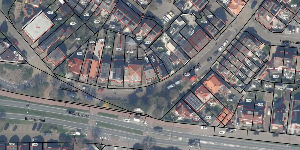 Het perceel waarop Emmaplein 1 staat heeft een oppervlakte van 186 m². Dit is een middelgroot perceel. De perceeloppervlakte wordt geregistreerd door het Kadaster. Gedetailleerde informatie over de maten van dit perceel kunt u vinden in het rapport Kadastrale kaart met maatvoering van Emmaplein 1.