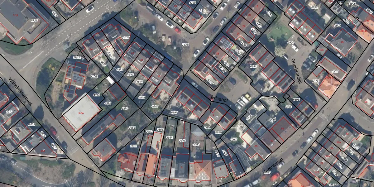 Het perceel waarop Ericahof 1 staat heeft een oppervlakte van 383 m². Dit is een groot perceel. De perceeloppervlakte wordt geregistreerd door het Kadaster. Gedetailleerde informatie over de maten van dit perceel kunt u vinden in het rapport Kadastrale kaart met maatvoering van Ericahof 1.