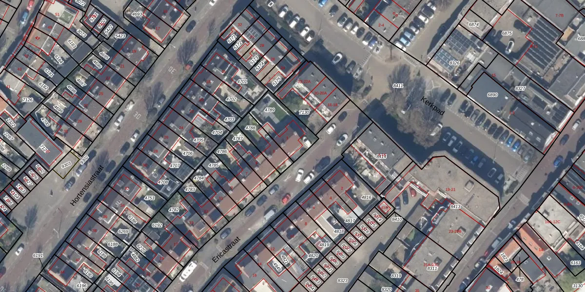 Het perceel waarop Ericastraat 1 staat heeft een oppervlakte van 263 m². Dit is een middelgroot perceel. De perceeloppervlakte wordt geregistreerd door het Kadaster. Gedetailleerde informatie over de maten van dit perceel kunt u vinden in het rapport Kadastrale kaart met maatvoering van Ericastraat 1.