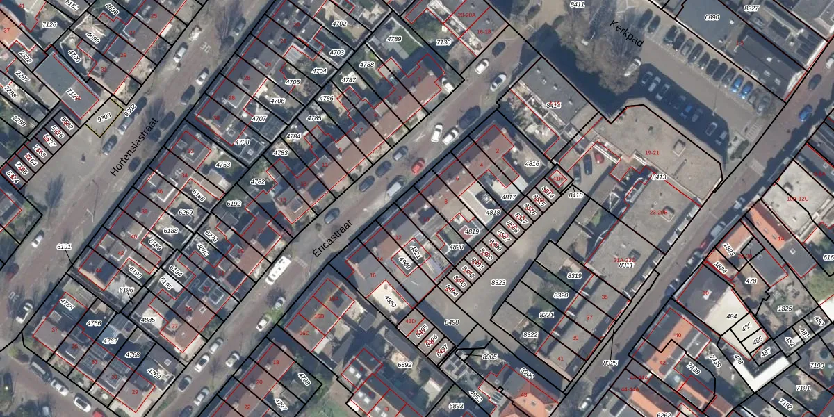 Ericastraat 10 is gelegen op kadastraal perceel MSR00G4820. Deze kadastrale aanduiding is uniek en wordt gebruikt door het Kadaster om eigendomsrechten en andere zakelijke rechten vast te leggen. Het perceel maakt onderdeel uit van de kadastrale gemeente Monster.