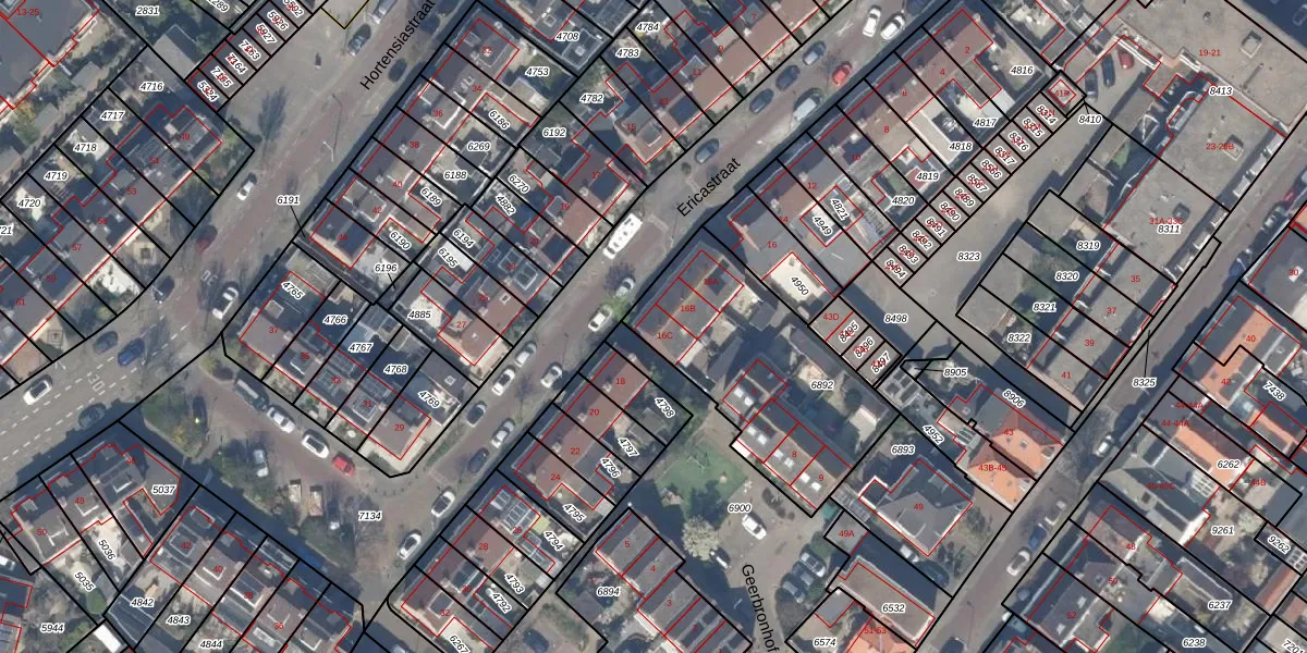 Het perceel waarop Ericastraat 16-C staat heeft een oppervlakte van 815 m². Dit is een groot perceel. De perceeloppervlakte wordt geregistreerd door het Kadaster. Gedetailleerde informatie over de maten van dit perceel kunt u vinden in het rapport Kadastrale kaart met maatvoering van Ericastraat 16-C.