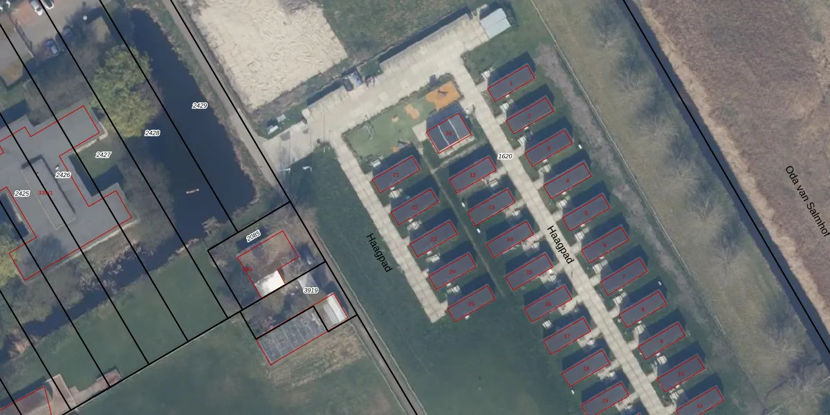 Het perceel waarop Haagpad 22 staat heeft een oppervlakte van 2,0 ha. Dit is een zeer groot perceel. De perceeloppervlakte wordt geregistreerd door het Kadaster. Gedetailleerde informatie over de maten van dit perceel kunt u vinden in het rapport Kadastrale kaart met maatvoering van Haagpad 22.