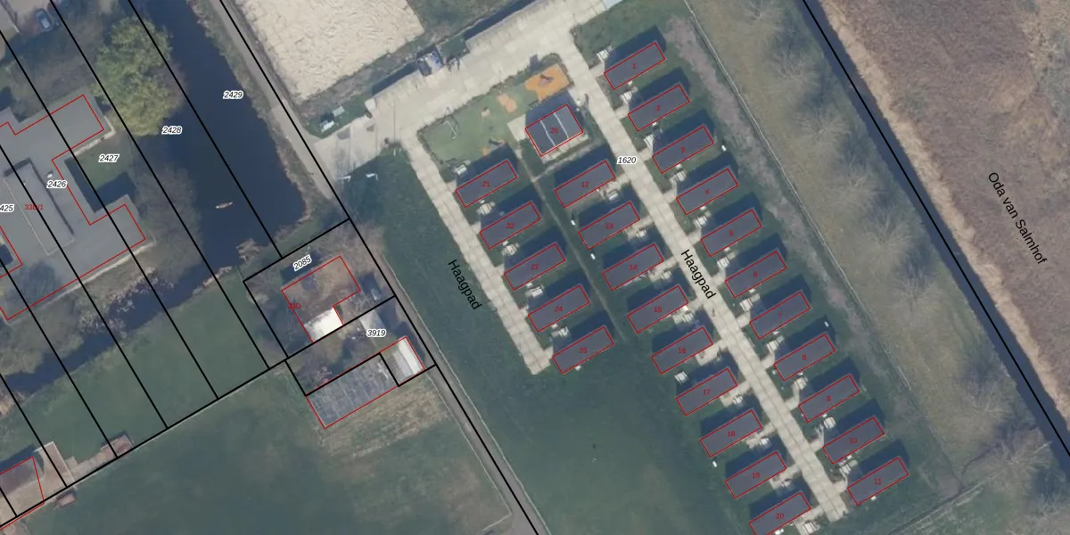 Het perceel waarop Haagpad 23 staat heeft een oppervlakte van 2,0 ha. Dit is een zeer groot perceel. De perceeloppervlakte wordt geregistreerd door het Kadaster. Gedetailleerde informatie over de maten van dit perceel kunt u vinden in het rapport Kadastrale kaart met maatvoering van Haagpad 23.