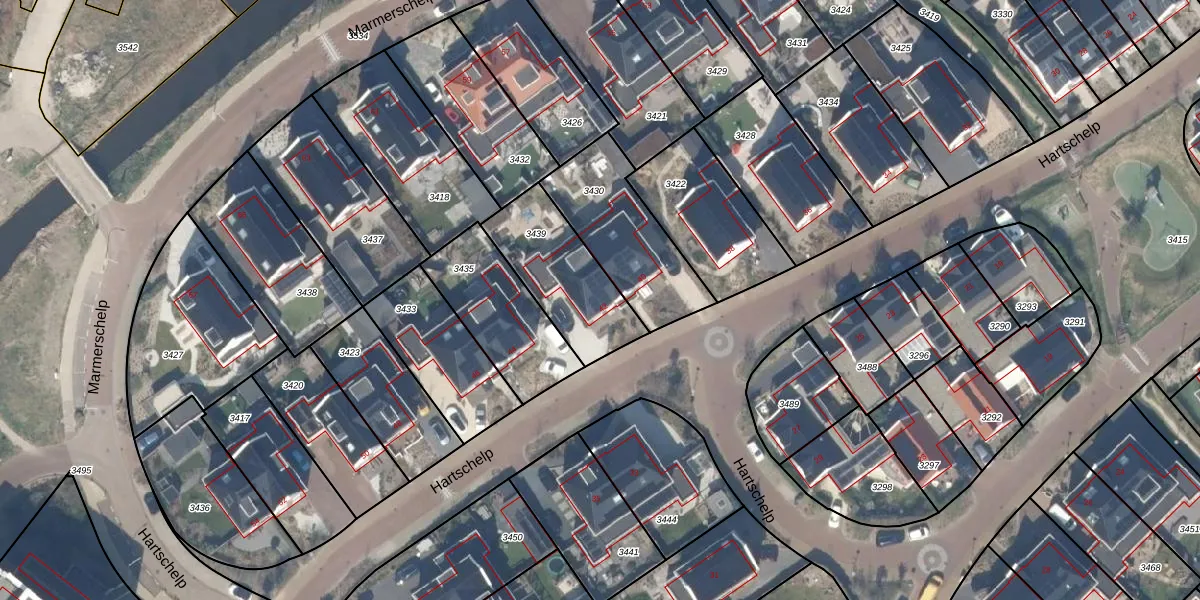 Het perceel waarop Hartschelp 42 staat heeft een oppervlakte van 365 m². Dit is een groot perceel. De perceeloppervlakte wordt geregistreerd door het Kadaster. Gedetailleerde informatie over de maten van dit perceel kunt u vinden in het rapport Kadastrale kaart met maatvoering van Hartschelp 42.