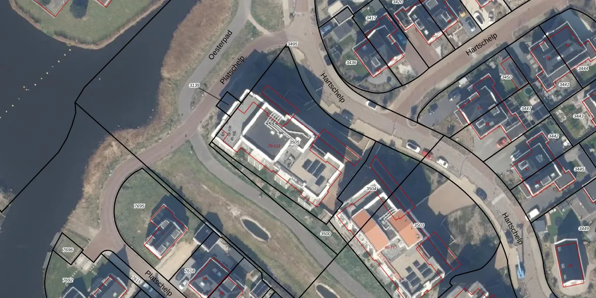 Het perceel waarop Hartschelp 83 staat heeft een oppervlakte van 1515 m². Dit is een zeer groot perceel. De perceeloppervlakte wordt geregistreerd door het Kadaster. Gedetailleerde informatie over de maten van dit perceel kunt u vinden in het rapport Kadastrale kaart met maatvoering van Hartschelp 83.