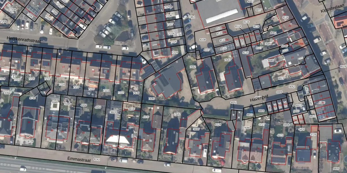 Het perceel waarop Havenhof 3 staat heeft een oppervlakte van 595 m². Dit is een groot perceel. De perceeloppervlakte wordt geregistreerd door het Kadaster. Gedetailleerde informatie over de maten van dit perceel kunt u vinden in het rapport Kadastrale kaart met maatvoering van Havenhof 3.