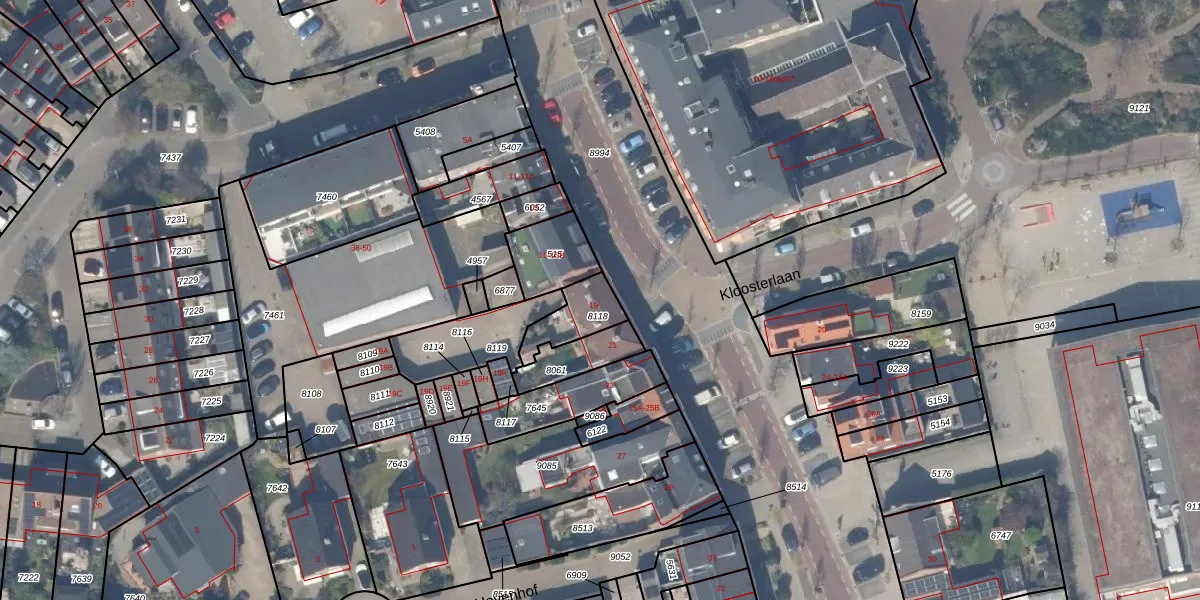 Gebruik de zoekbalk of klik op een perceel voor informatie over de adressen binnen dit perceel.