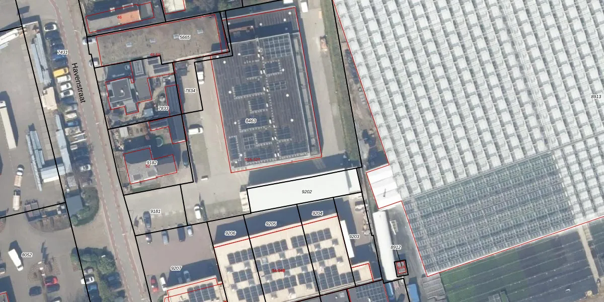 Het perceel waarop Havenstraat 52-K staat heeft een oppervlakte van 3080 m². Dit is een zeer groot perceel. De perceeloppervlakte wordt geregistreerd door het Kadaster. Gedetailleerde informatie over de maten van dit perceel kunt u vinden in het rapport Kadastrale kaart met maatvoering van Havenstraat 52-K.
