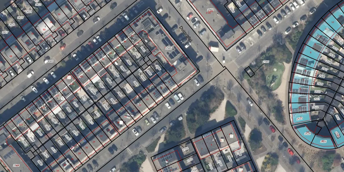 Gebruik de zoekbalk of klik op een perceel voor informatie over de adressen binnen dit perceel.
